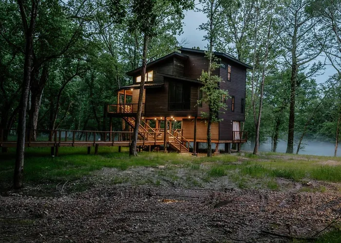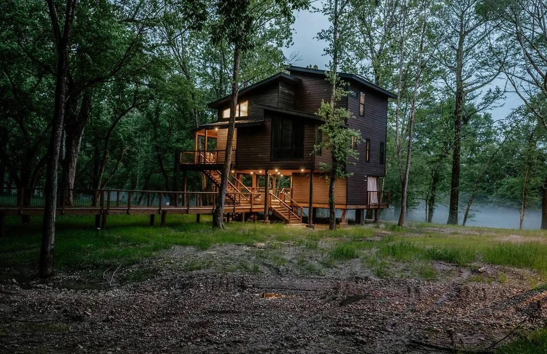 Living Waters Getaway On A River In Broken Bow Eagletown villa offers guests a relaxing experience with a hot tub.